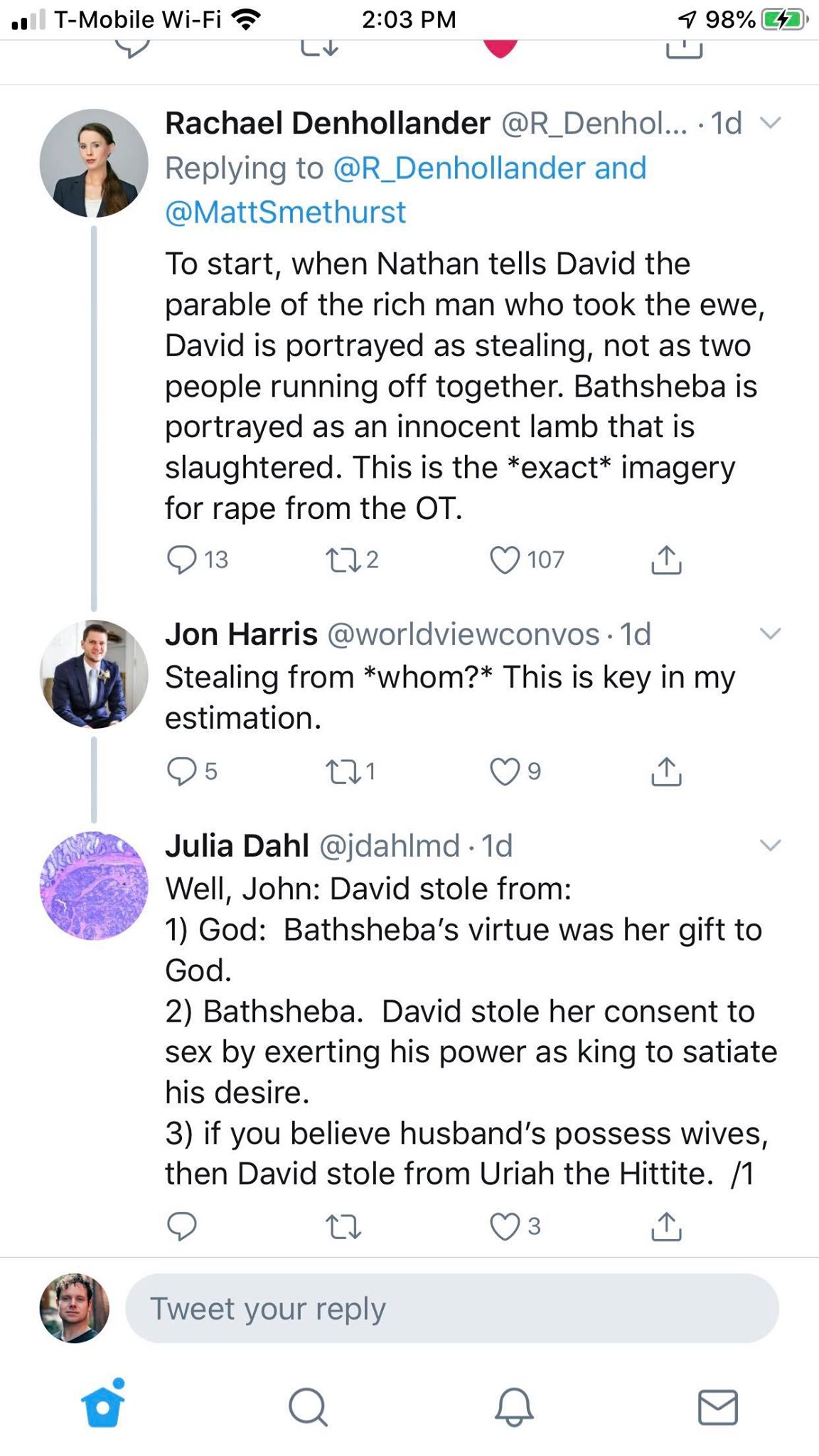 In recent days, Christians have been debating whether King David raped Bathsheba or if she seduced him. For those who aren’t Christian or don’t know, this matters because the attitudes and beliefs Christians have about sex crimes, abuse, and abuse of power trace back to how Christians read particular passages—and King David has largely enjoyed centuries of rationalizations and excuses while an innocent woman is defamed.